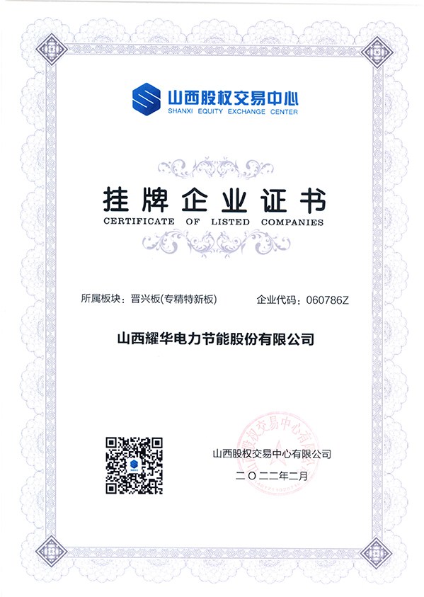 山西耀華電力節(jié)能股份有限公司是國內(nèi)第一家提出谷期電集中儲(chǔ)能蓄能的高新技術(shù)企業(yè),其主營業(yè)務(wù):電力市場購售電交易運(yùn)營、電力設(shè)施安裝檢測運(yùn)維、 低谷電采暖設(shè)備的研發(fā)、生產(chǎn)、安裝、銷售及運(yùn)行服務(wù)于一體。公司成立于1996年,落座于山西省太原市,現(xiàn)有股權(quán)代碼在晉興板上市的專精特新企業(yè),中國建設(shè)科技自主創(chuàng)新優(yōu)勢企業(yè),山西省節(jié)能協(xié)會(huì)理事單位,擁有自主知識(shí)產(chǎn)權(quán),獲得國家多項(xiàng)專利,參編了電采暖國家標(biāo)準(zhǔn)(JC/T60008-2021)和主編了山西省地方標(biāo)準(zhǔn)(DBJ04/T291-2012)。擁有國家發(fā)明專利11項(xiàng),軟件著作權(quán)6項(xiàng)。其中“大數(shù)據(jù)遠(yuǎn)程集中監(jiān)控運(yùn)維服務(wù)平臺(tái)”早在2019年就在河北、天津、山西等多個(gè)煤改電地區(qū)投入試用,節(jié)能效果非常顯著,運(yùn)維方便快捷,用戶滿意。